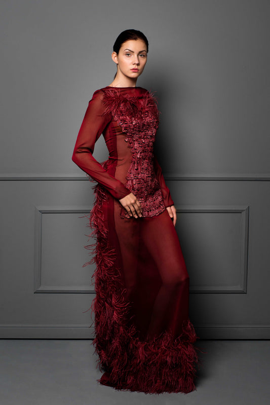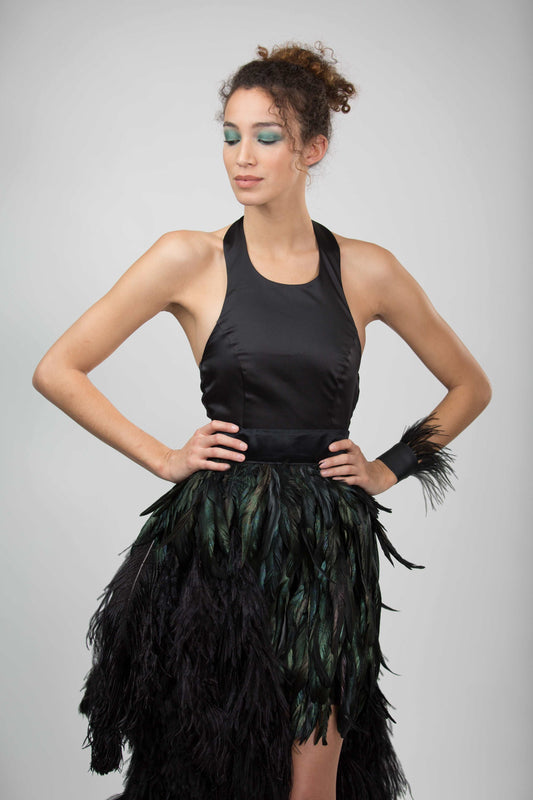 GREY OMBRÉ ASYMMETRICAL FEATHER DRESS