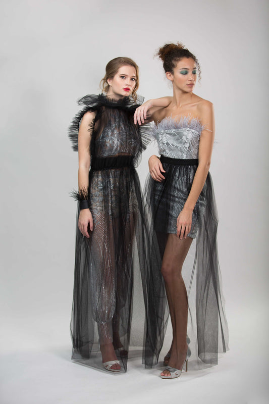GREY OMBRÉ ASYMMETRICAL FEATHER DRESS